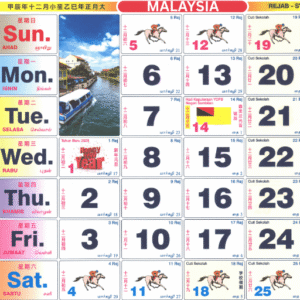 Kalendar Kuda 2025 shows public holidays, school holidays, red dates, festivals, and other important dates in Malaysia. This section includes the racing horse calendar and follows the Gregorian system, with selected holidays based on Islamic and Chinese lunar calendars. Dates may vary by state and official announcements.